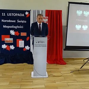 Szkolna uroczystość rozpoczęła się odśpiewaniem Hymnu Narodowego. Następnie głos zabrał dyrektor szkoły Andrzej Nazarko, który w swoim przemówieniu mówił o dwu wzorcach polskiego patriotyzmu oraz okolicznościach odzyskania przez Polskę niepodległości. Z kolei wójt Ireneusz Demianiuk poruszył temat współczesnego pojmowania patriotyzmu i odpowiedzialności za wolność, którą dzięki poświęceniu przodków, posiadamy.
