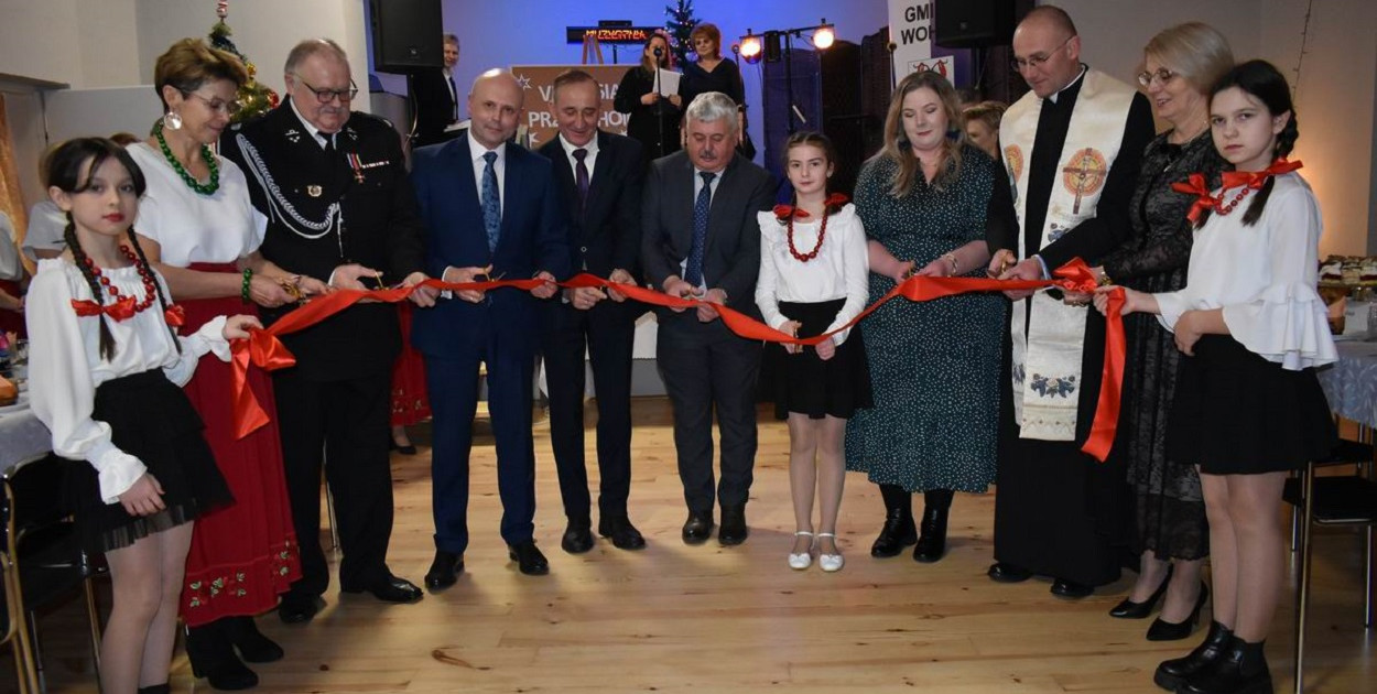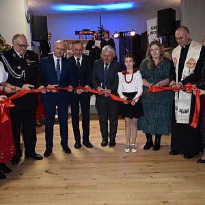 Osoby zaangażowane w wykonanie projektu oraz przedstawiciele społeczności lokalnej dokonali uroczystego przecięcia wstęgi, a ks. Andrzej Danieluk - proboszcz parafii Ostrówki - dokonał poświęcenia wszystkich pomieszczeń w budynku.