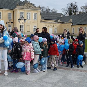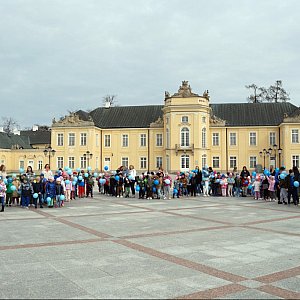 Na dziedzińcu pałacu Potockich spotkali się: starosta radzyński Szczepan Niebrzegowski, uczniowie SOSW wraz z rodzicami, nauczyciele z Ośrodka, przedszkolaki radzyńskich przedszkoli oraz podopieczni Dziennego Środowiskowego Domu Samopomocy. Zebranych powitała pani dyrektor SOSW, Marta Kożuch, po czym zaprosiła do wspólnego przemarszu symbolizującego solidarność z osobami w spektrum autyzmu, ich rodzinami i bliskimi.