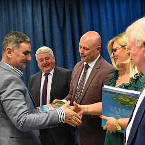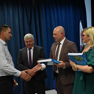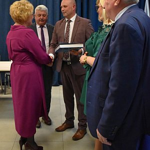 W jej trakcie wójt Tomasz Jurkiewicz wraz z członkami prezydium Rady - Krzysztofem Barszczewskim (przewodniczącym Rady) oraz Magdaleną Pomorską i Romanem Trochimiakiem (wiceprzewodniczącymi) - wręczyli pamiątkowe albumy jako podziękowanie radnym za pracę podczas tej kadencji.