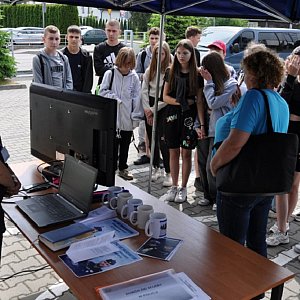 Specjalistki do spraw kadr przygotowały materiały informacyjne w postaci plakatów i ulotek dotyczące naboru do Policji oraz udzielały informacji o tym, jakie warunki trzeba spełnić, żeby zostać policjantem i na czym polegają kolejne etapy rekrutacji.