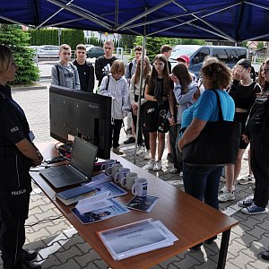 Zorganizowany przez policjantów Dzień Otwarty to doskonała okazja do poznania policyjnej służby „od środka”. Tak jak poprzednio, również i tym razem nasza inicjatywa przyciągnęła młodych ludzi, którzy chcieli dowiedzieć się i zobaczyć, jak pracują policjanci. Dużym zainteresowaniem wśród zwiedzających cieszyło się stoisko z bronią i środkami przymusu bezpośredniego. Goście mogli także usiąść za kierownicą policyjnego radiowozu czy motocykla służbowego wykorzystywanego przez funkcjonariuszy drogówki. Pod czujnym okiem doświadczonego technika kryminalistyki dzieci mogły pobrać swoje odciski palców i poznać tajniki pracy na miejscu zdarzeń kryminalnych.
