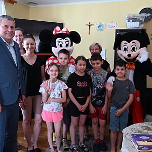31 maja br. starosta Rrdzyński Szczepan Niebrzegowski odwiedził Oddział Dziecięcy w radzyńskim szpitalu oraz Placówki Opiekuńczo-Wychowawcze "Mój Dom", aby złożyć życzenia z okazji Dnia Dziecka i wręczyć prezenty. Towarzyszyły mu postacie Myszki Miki, w które wcielili się : Ania i Artur Firla. Ta wspólna inicjatywa miała na celu przynieść radość najmłodszym i uczynić ich dzień wyjątkowym.
