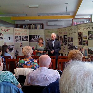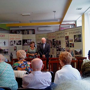Przedstawicielka tej ostatniej instytucji, pani Irena Mospinek, po powitaniu wszystkich zgromadzonych przez prezesa RUTW Dariusza Gałana, przybliżyła życiorys bohatera wystawy, opowiadając o jego pochodzeniu, historii Jabłonia, pojawieniu się u Augusta Zamoyskiego pasji rzeźbiarskiej, konfliktach rodzinnych, związkach z kobietami, innych pasjach Zamoyskiego, zarządzaniu majątkiem w Jabłoniu, emigracji, nawróceniu pod koniec życia oraz paru ciekawostek dotyczących rzeźbiarstwa. Zachęciła nie tylko do obejrzenia wystawy, ale także do odwiedzenia muzeum w Jabłoniu i wsparcia placówki. Cała opowieść wzbudziła zainteresowanie i uznanie obecnych na sali.