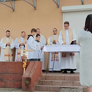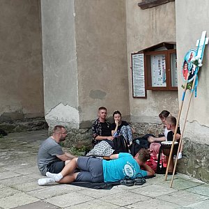 Dziś przeszliśmy etap z Małszyna do Suchedniowa mający długość 31 km. Obiad jedliśmy przy pięknym klasztorze ojców cystersów w Wąchocku, gdzie powitano nas biciem w dzwony. Na nocleg przyszliśmy dosyć wcześnie. Przyjechali do nas parafianie z parafii w Przegalinach Dużych. Pod wieczór odbył się "chrzest" osób które pielgrzymują po raz pierwszy.