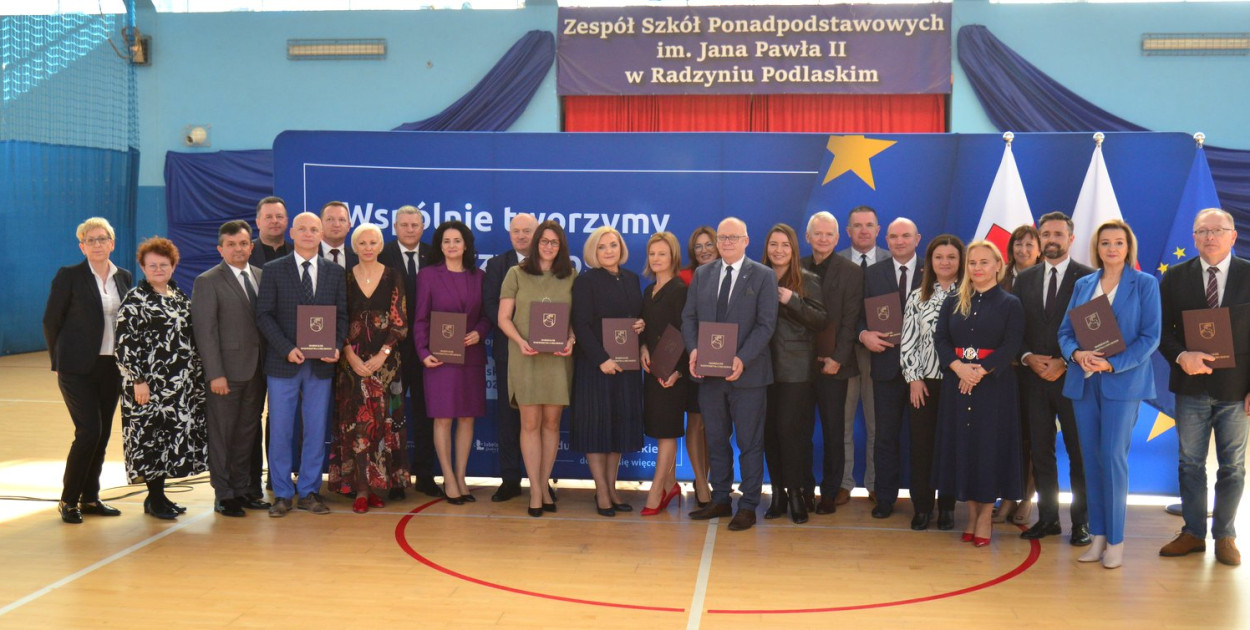 21 października br. w sali widowiskowo-sportowej Zespołu Szkół Ponadpodstawowych im. Jana Pawła II w Radzyniu Podlaskim odbyła się uroczystość wręczenia umów dotyczących finansowania kształcenia zawodowego w ramach Funduszu Europejskiego dla Lubelskiego 2021-2027.