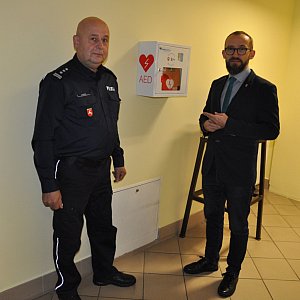 Defibrylatory znajdujące się w budynku komendy i dostępny jest 24 godziny na dobę, przez 7 dni w tygodniu.