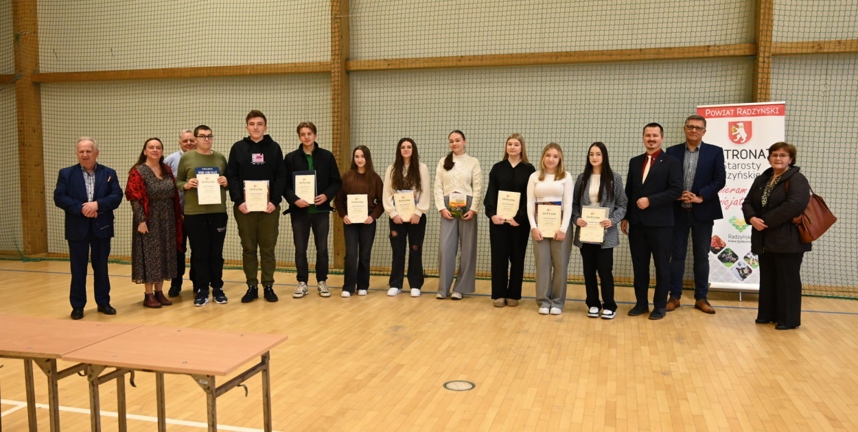 W trakcie uroczystości przekazano podziękowanie dla starosty radzyńskiego Szczepana Niebrzegowskiego za objęcie konkursu honorowym patronatem oraz Zarządowi Powiatu Radzyńskiego za wsparcie finansowe, dzięki któremu 12 laureatów – 8 uczniów szkół ponadpodstawowych i 4 szkół podstawowych – otrzymało cenne nagrody książkowe oraz dyplomy. Prezes Zarządu RTR, Tadeusz Pietras, wyraził szczególne podziękowania dla pani Ewy Grodzkiej za pomoc organizacyjną oraz umożliwienie skorzystania z sali gimnastycznej, a także dla pana Mirosława Juszczyńskiego oraz opiekunów młodzieży, którzy pomogli w przeprowadzeniu konkursu.
