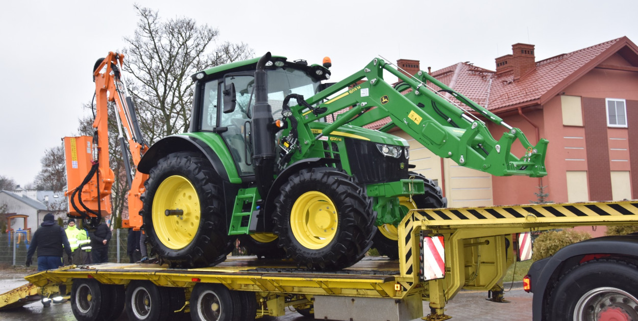 9.01.2025 r. nastąpiła dostawa i odbiór dwóch nowych ciągników rolniczych marki John Deere: jednego z ładowaczem czołowym i pługiem do odśnieżania, drugiego z ładowaczem czołowym i kosiarką. Ich łączna wartość wynosi 1.227.540,00 zł. Zadanie to zostało dofinansowane w 75% z programu inwestycji strategicznych "Polski Ład".