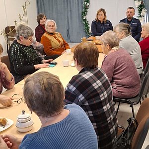 Dzielnicowa przytoczyła przypadki, jakie zaistniały na terenie naszego powiatu. Uczestnicy mogli poznać pomysłowość oszustów, którzy, podając się za członków rodziny, znajomych, administratorów i inne osoby z pozoru godne zaufania wyłudzają pieniądze. Policjantka udzieliła osobom starszym wskazówek, jak należy postępować w przypadku kontaktu z osobą, która może okazać się potencjalnym oszustem. Apelowała także o ostrożność wobec osób nieznajomych i rozmówców telefonicznych. Zanim w pełni zaufamy rozmówcy sprawdźmy czy jest tym za kogo się podaje oraz czy przekazywane przez niego informację są prawdziwe.