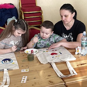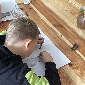 W Jaskach uczestnicy najpierw próbowali swoich sił w malowaniu węglem. Na zakończenie zajęć czekała na nich dodatkowa atrakcja – malowanie na tkaninie, gdzie mogli puścić wodze fantazji i stworzyć własne, unikalne wzory.