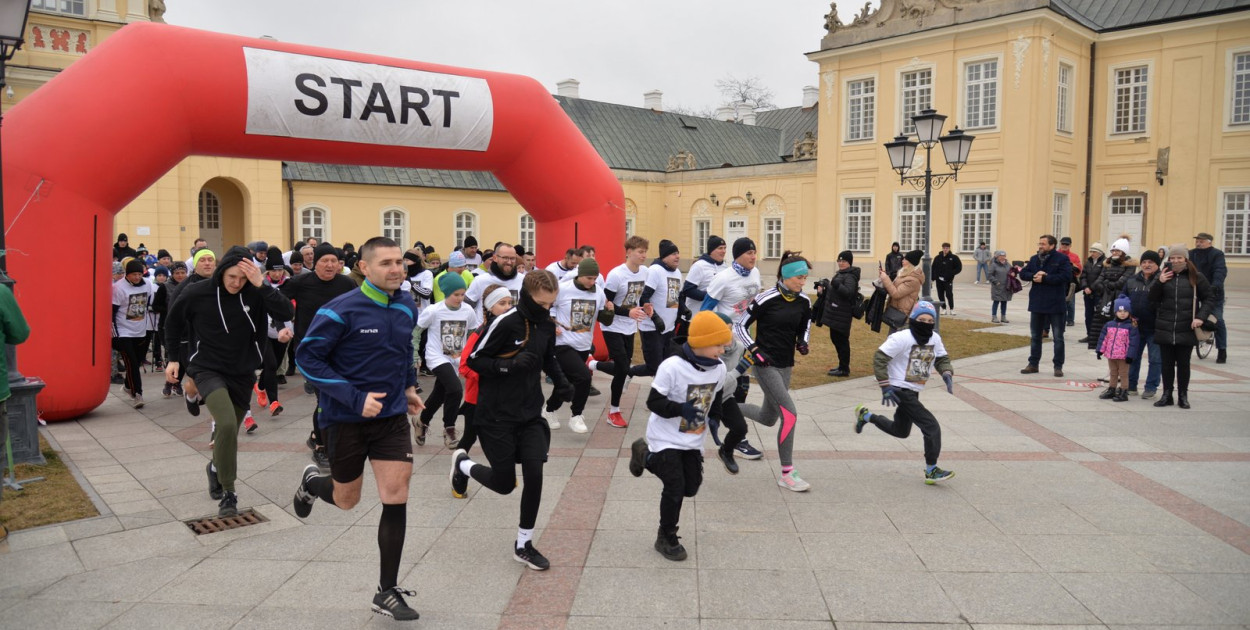 Rozgrzewkę, wspomnianą przez dyrektora, poprowadziła instruktorka Alicja Trykacz, a następnie wszyscy biegacze ustawili się na linii startu przy dziedzińcu pałacu Potockich.
