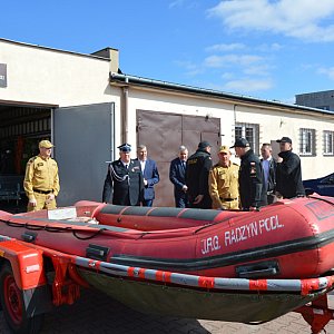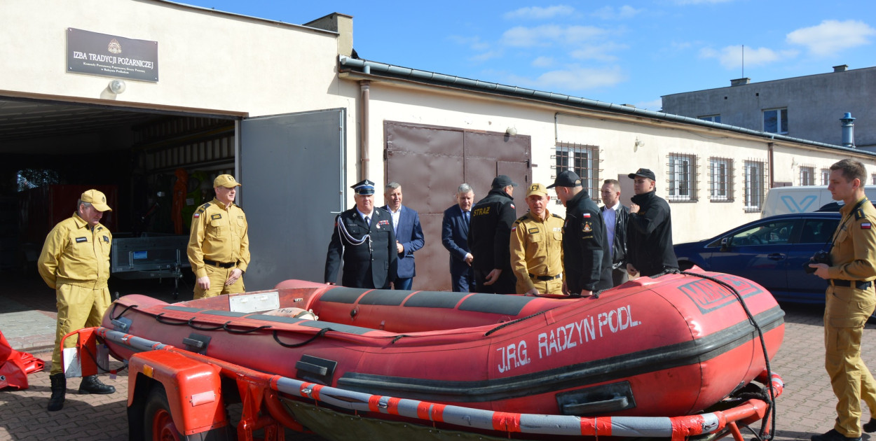 28 marca 2025 r. Powiatowa Państwowa Straż Pożarna w Radzyniu Podlaskim nieodpłatnie przekazała na rzecz Ochotniczej Straży Pożarnej w Komarówce Podlaskiej ponton na przyczepie z silnikiem i wyposażeniem.