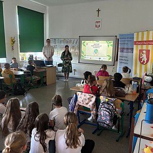 Uczniom przybliżono wiedzę na odnawialnych źródeł energii i zmian klimatu. Po części teoretycznej doradcy klimatyczni zorganizowali quiz dla słuchaczy. Uczniowie chętnie angażowali się i błyskotliwie odpowiadali na zadawane im pytania. Na koniec dla najmłodszych zorganizowano warsztaty związane z segregacją odpadów, z którymi mają styczność na co dzień.Im więcej osób będzie świadomych ekologicznie, tym większa szansa na utrzymanie czystego i zdrowego środowiska.