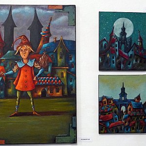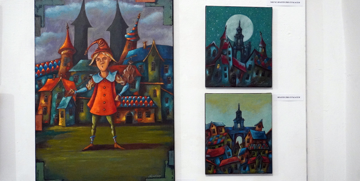 Rzeczywiście obrazy Arkadiusza Kulpy są w takim właśnie stylu, aczkolwiek da się w nich obok elementów wyglądających baśniowo także elementy dobrze znajome, przede wszystkim wplecione radzyńskie zabytki, zwłaszcza pałac Potockich. Często pojawia się też motyw kruka, gdyż w Radzyniu żyje wiele ptaków z rodziny krukowatych.