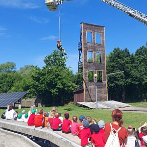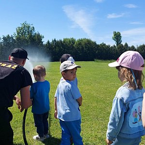 Podczas spotkania przedszkolaki miały też możliwość obejrzenia wozów strażackich i sprzętu, jakiego strażacy używają podczas akcji ratowniczych. Oprócz poznania tajników pracy strażaka, przedszkolaki zdobyły bardzo cenną wiedzę na temat zasad bezpieczeństwa, dowiedziały się, jak należy zachować się w trakcie zagrożenia i poznały ogólnopolski numer alarmowy 112. Największą atrakcją dla dzieci było operowanie prądami gaśniczymi w asyście strażaka, dzięki czemu mogły poczuć się jak prawdziwi strażacy.