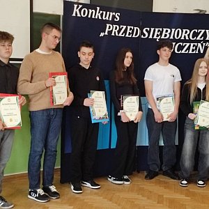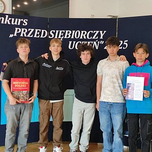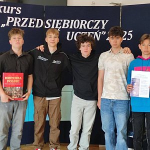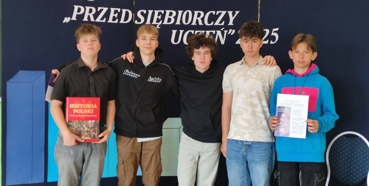 Uczniowie Szkoły Podstawowej w Domaszewnicy - Jan Drążek, Piotr Mućka, Aleksander Ścioch, Bartosz Ścioch i Marek Żądełek - wystartowali w finale powiatowego konkursu "Przedsiębiorczy uczeń 2025". Konkurs odbył się w Zespole Szkół Ponadpodstawowych im. Jana Pawła II w Radzyniu Podlaskim.