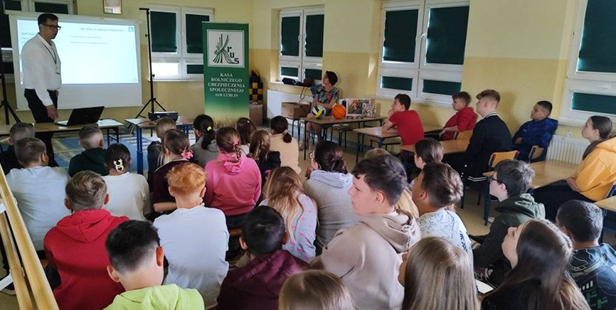 Bezpieczeństwo podczas zabaw i prac na wsi było tematem spotkania z przedstawicielami Kasy Rolniczego Ubezpieczenia Społecznego z placówki terenowej w Radzyniu Podlaskim, które odbyło się w Szkole Podstawowej w Domaszewnicy 13 VI 2025 roku. Głównym założeniem spotkania było promowanie pozytywnych zachowań związanych z pracą i zabawą na wsi oraz szerzenie wiedzy o bezpieczeństwie i higienie pracy rolniczej, oraz zdrowy styl życia i jego wpływu na kondycję człowieka. Pracownicy przygotowali też upominki dla dzieci.