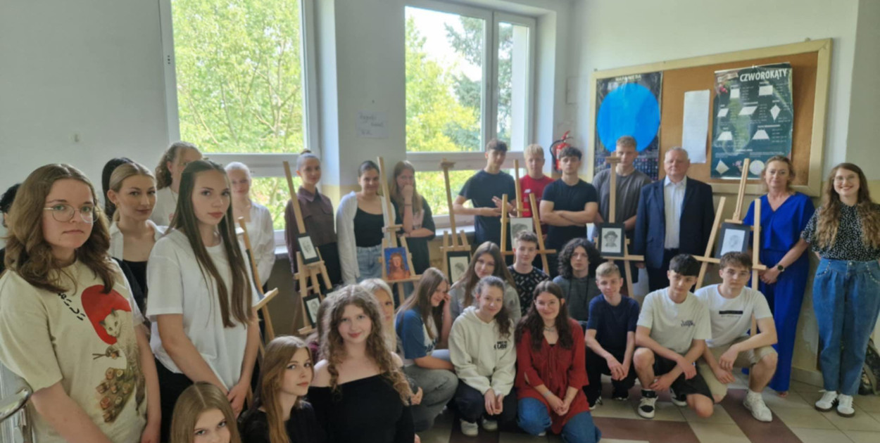 Prace Jagody zdobiły szkolne korytarze już od Dnia Otwartego Szkoły, ale tego dnia koledzy i koleżanki z klasy Jagody wraz z panem wicedyrektorem Mirosławem Juszczyńskim, panią pedagog i opiekun Samorządu Szkolnego, panią Moniką Rączka, nauczycielką matematyki, panią Anną Zabielską, oraz wychowawczynią, panią Gabrielą Kobyłką, mieli okazję podziwiać pracę młodej artystki z bliska raz jeszcze, poświęcając im szczególną uwagę.