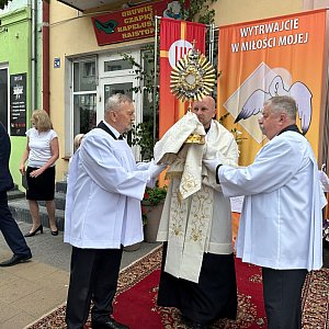 Zapraszamy do obejrzenia fotorelacji z obchodów Uroczystości Najświętszego Ciała i Krwi Chrystusa, potocznie zwanego Bożym Ciałem, w parafii p. w. Trójcy Świętej w Radzyniu Podlaskim, w tym przede wszystkim z tradycyjnej procesji. W zorganizowanie jej zaangażowanych było dużo osób: księża, 80 ministrantów i lektorów, chór parafialny, schola dziecięca, wiele osób prywatnych, wspólnoty kościelne, przedstawiciele miejscowości, którzy nieśli znaki religijne, chorągwie, feretrony, dzieci niosące różaniec, poduszki, sypiące płatki kwiatów, strażakom i policjanci zabezpieczający uroczystość, a także osoby, które użyczyły miejsce na ołtarze.