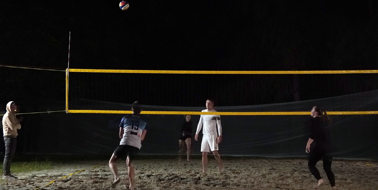 Z okazji początku lata Miejski Ośrodek Sportu i Rekreacji zaplanował na 3 dni (od 27 do 29 czerwca) szereg imprez dla mieszkańców. W ramach Świętojańskiej Nocy Sportowej zorganizowanej przedwczoraj (w piątek 27 czerwca późnym wieczorem) zaplanowano turniej siatkówki plażowej. Omal nie został on odwołany z powodu deszczowej pogody, która doprowadziła do odwołania innej planowanej imprezy (dyskoteki), ostatecznie jednak się odbył. Grano w dwóch kategoriach ("open" oraz "miksty"). Zawodnicy mogli posilić się grochówką i kiełbaskami. Grano aż do rana. Finał kategorii "miksty" był o 4.30, ostatni mecz kategorii "open" godzinę później.