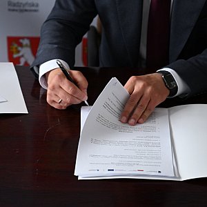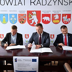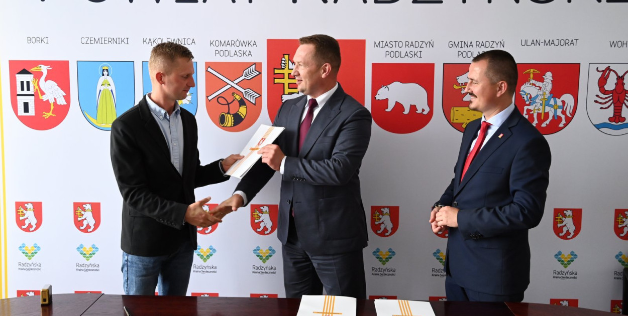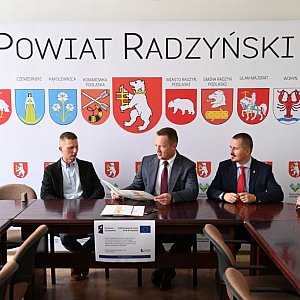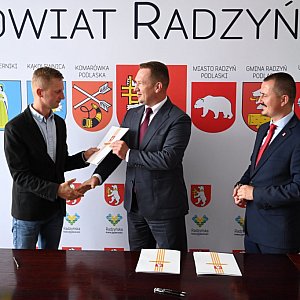 Umowę na realizację zadania w imieniu wykonawcy podpisał Prezes spółki Bruk Bud Łuków Sp. z o.o. Sławomir Świderski, natomiast ze strony powiatu dokumenty sygnowali: wicestarosta radzyński Ireneusz Mroczek oraz członek Zarządu Powiatu Radzyńskiego, Tomasz Stephan, przy kontrasygnacie skarbnika powiatu Justyny Sałaj.