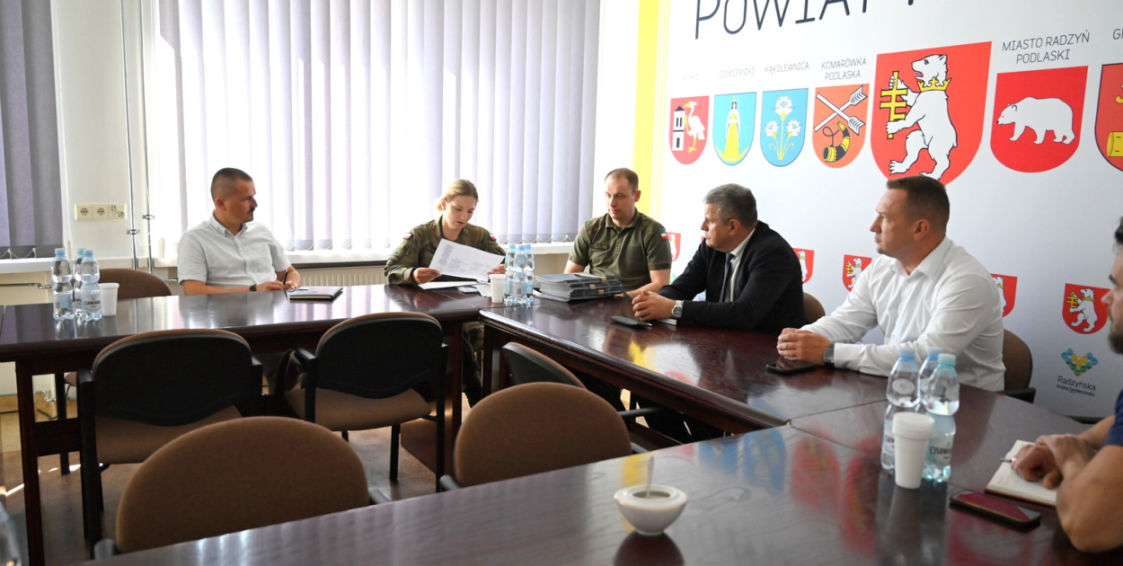 13 sierpnia 2025 roku w sali konferencyjnej Starostwa Powiatowego w Radzyniu Podlaskim odbyło się kolejne spotkanie poświęcone realizacji programu "Tarcza Wschód" na terenie powiatu radzyńskiego. W naradzie uczestniczyli: starosta radzyński Szczepan Niebrzegowski, eicestarosta Ireneusz Mroczek, członek Zarządu Powiatu - Tomasz Stephan, przedstawiciele gminy Wohyń, kierownik Wydziału Bezpieczeństwa i Zarządzania Kryzysowego - Jarosław Błażewicz oraz reprezentanci Wojsk Obrony Terytorialnej z 2. Lubelskiej Brygady Obrony Terytorialnej. Kontynuowano rozmowy rozpoczęte w maju, omawiając postępy przygotowań, priorytety inwestycyjne oraz możliwości dalszej współpracy z lokalnymi społecznościami.