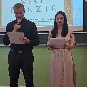 Wydarzenie odbyło się w szkolnej auli i zgromadziła duże grono uczestników i słuchaczy. Narodowe Czytanie zainaugurowała wicedyrektor Dorota Krasucka. Odniosła się do szkolnej tradycji udziału w kolejnych edycjach organizowanych zarówno w szkole, jak i w przestrzeni miejskiej, po czym pogratulowała uczniom zaangażowania w wydarzenie.