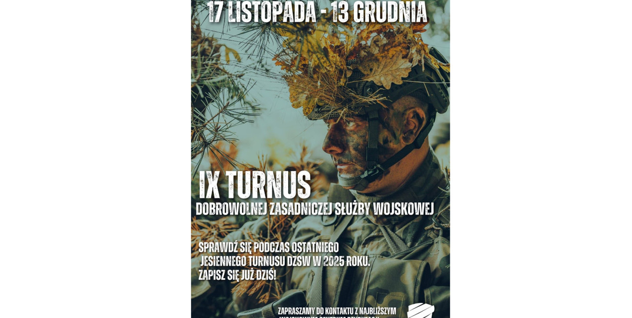 Wojskowe Centrum Rekrutacji w Białej Podlaskiej prowadzi nabór na IX turnus Dobrowolnej Zasadniczej Służby Wojskowej (DZSW), który odbędzie się w dniach 17 listopada – 13 grudnia 2025 roku.