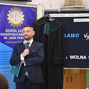 Dwoje adwokatów - Aleksandra Dzida i Paweł Grzywocz - w ramach ogólnopolskiej akcji edukacyjnej "Adwokaci rozjaśniają prawo" poprowadziło w Zespole Szkół Ponadpodstawowych im. Jana Pawła II w Radzyniu Podlaskim specjalne zajęcia dla młodzieży pod tytułem "Prawo vs. hejt. Szkoła wolna od hejtu". Młodzi ludzie mogli spojrzeć na zjawisko hejtu z perspektywy prawa, odpowiedzialności i empatii. Założeniem spotkania było nie tylko poszerzenie wiedzy, ale również zachęcenie do refleksji nad kulturą słowa i szacunkiem wobec innych.