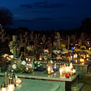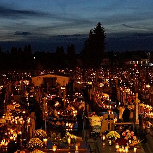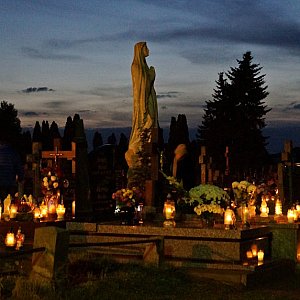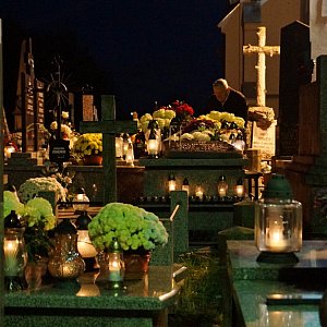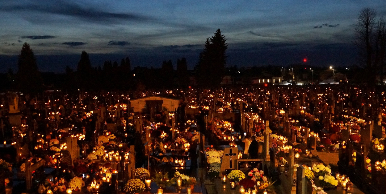 Cmentarz parafialny 1 XI wieczorem - zdjęcia