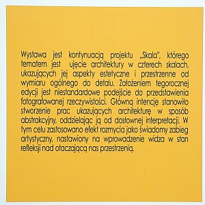Fotografie z wystawy zostały zrobione do projektu "Skala". Założeniem tegorocznej jego edycji było wykonanie zdjęć ukazujących architekturę w sposób abstrakcyjny. Temu służy efekt rozmycia obrazu.