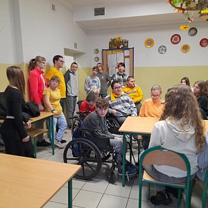 21 listopada Specjalny Ośrodek Szkolno-Wychowawczy im. Zofii Sękowskiej w Radzyniu Podlaskim odwiedziła grupa uczniów I Liceum Ogólnokształcącego w Radzyniu Podlaskim. Licealiści spotkali się z uczniami SOSW z okazji Dnia Życzliwości. Spotkanie zorganizowane w ramach wspólnie realizowanego projektu z FSE, miało na celu przybliżyć licealistom życie uczniów niepełnosprawnych. Mogli oni dowiedzieć się, jak wygląda nauka w SOSW, jakie działania są tam podejmowane, w jaki sposób podopieczni Ośrodka mogą rozwijać swoje zainteresowania. Młodzi ludzie ze szkoły średniej mogli przekonać się, że osoby niepełnosprawne też mają swoje marzenia, pasje, też lubią gry komputerowe i muzykę. Wspólne rozmowy o marzeniach, zainteresowaniach i szkolnym życiu przebiegły w przyjaznej atmosferze.