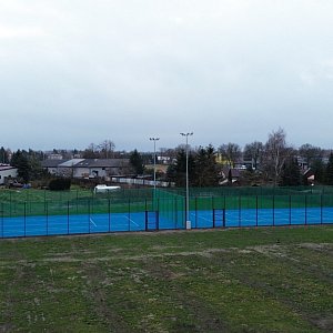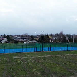 Boisko wykonano z trwałej poliuretanowej nawierzchni w kolorze niebieskim z wyraźnie oznaczonymi liniami do gry w takie dyscypliny jak tenis ziemny oraz siatkówka. Całość ogrodzono wysokimi piłkochwytami, a wzdłuż boiska zamontowano nowoczesne maszty oświetleniowe, umożliwiające korzystanie z obiektu także po zmroku. Wymiary boiska zapewniają dobrą widoczność i komfort gry, sprzyjając organizacji zajęć wychowania fizycznego i wydarzeń sportowych.