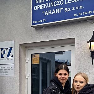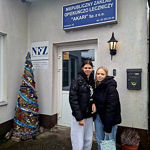 12 grudnia 2025 r. uczniowie Zespołu Szkół im. Jana Pawła II pod opieką pani Justyny Mitury odwiedzili Niepubliczny Zakład Opiekuńczo-Leczniczy "Akari" w Ustrzeszy. Podczas wizyty złożyli pensjonariuszom serdeczne życzenia świąteczne oraz obdarowali ich pierniczkami przygotowanymi przez uczniów klas gastronomicznych. Na ręce dyrekcji placówki przekazano świąteczny piernik jako wyraz życzliwości.