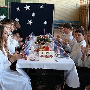 Uroczystość zainaugurowano w hali sportowej, gdzie dyrektor szkoły, Beata Żurawska-Polkowska, serdecznie powitała zgromadzonych, wprowadzając wszystkich w świąteczny nastrój. Obok dyrekcji, grona pedagogicznego, uczniów oraz rodziców, w spotkaniu wzięli udział także: starosta radzyński Szczepan Niebrzegowski, wicestarosta Ireneusz Mroczek oraz członek Zarządu Powiatu Radzyńskiego, Alina Kryjak. Szczególnym punktem programu była część artystyczna przygotowana przez uczniów pod kierunkiem Elżbiety Kozieł. Przedstawienie w poruszający i dojrzały sposób ukazało problemy współczesnego świata — hejt, obojętność i brak empatii. Młodzi wykonawcy przypomnieli, że fundamentem relacji międzyludzkich powinny być miłość, równość, życzliwość oraz otwarte serce dla drugiego człowieka. Występ spotkał się z długimi brawami, poruszając serca zgromadzonych i skłaniając do refleksji nad tym, co w życiu naprawdę ważne, zwłaszcza w okresie Świąt Bożego Narodzenia.