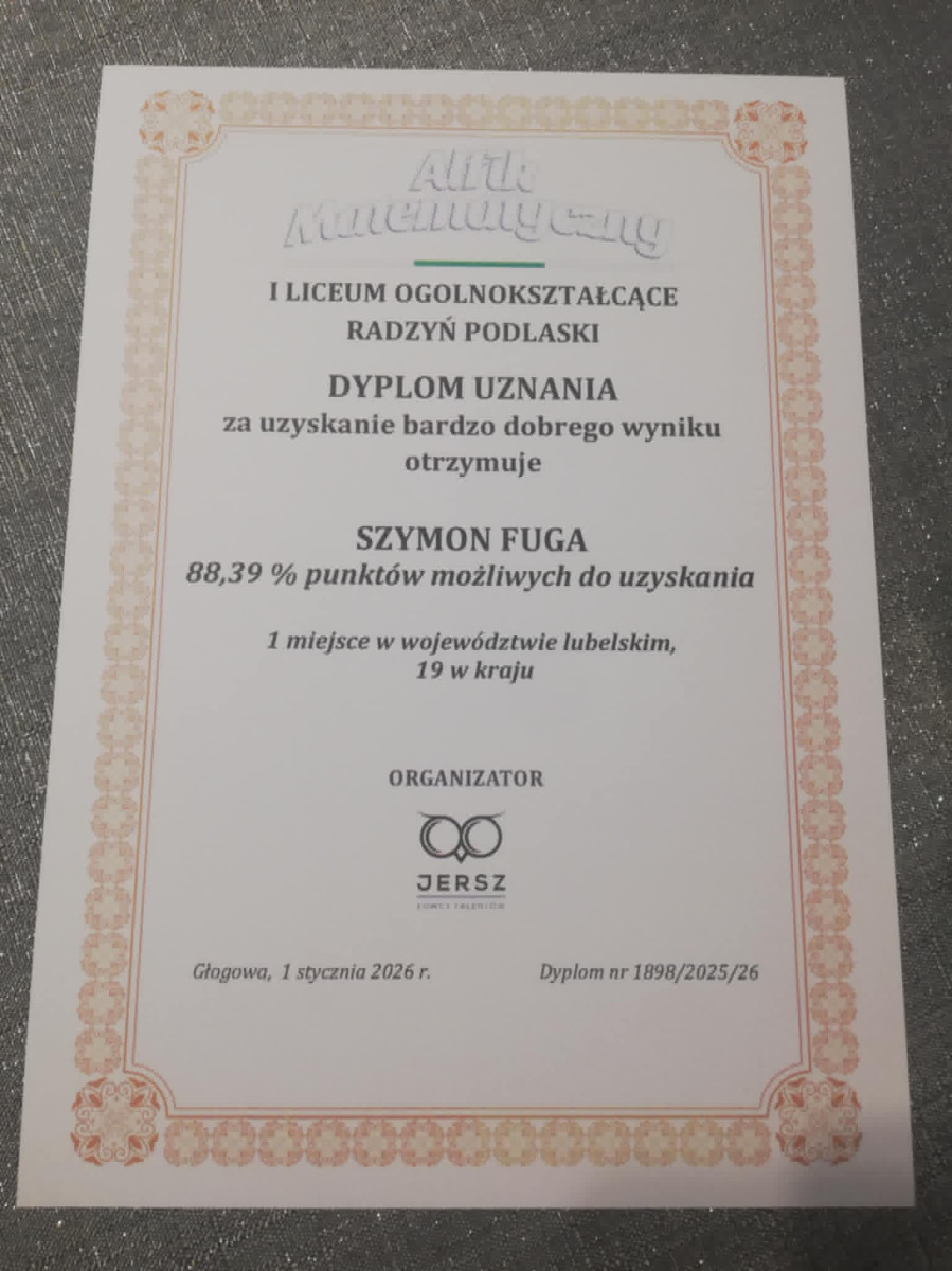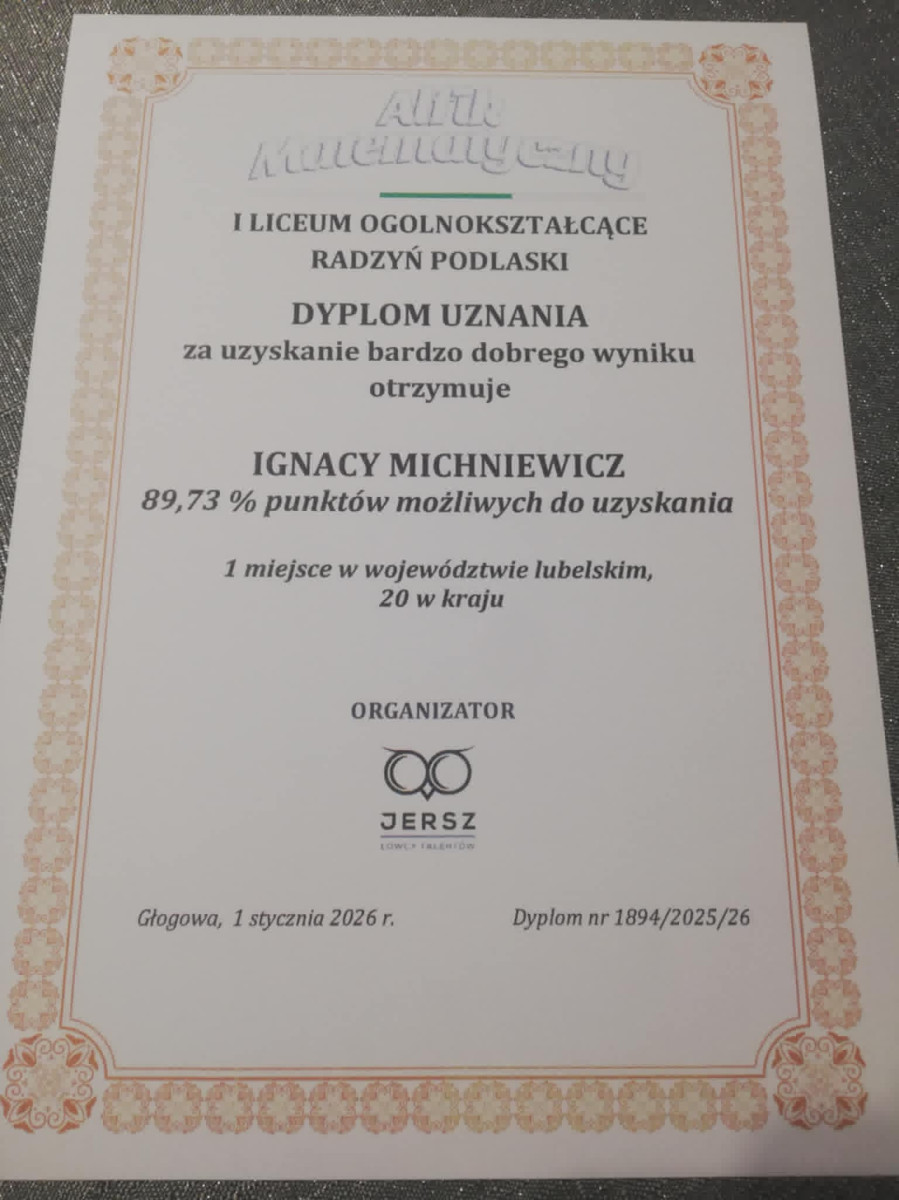 Sukcesami swoich uczniów w dziedzinie matematyki może się pochwalić I Liceum Ogólnokształcące w Radzyniu Podlaskim.