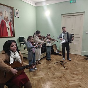 W niedzielę 25 stycznia działająca przy radzyńskiej parafii p. w. Trójcy Świętej schola dziecięca "Błękitne Nutki" razem z ks. Łukaszem Wardakiem, rodzicami i opiekunami scholi udała się do Łukowa, do kościoła pw. Podwyższenia Krzyża Świętego. Dziewczęta wzięły udział w koncercie kolęd i pastorałek razem z parafialną scholą "Promyczki" z Łukowa oraz parafialną grupą młodzieżową z par. Najświętszego Serca Jezusa z Zarzecza Łukowskiego. "Błękitne nutki" otrzymały pamiątki z występu moc ciepłych słów oraz gościnę od gospodarzy na czele z ks. proboszczem Andrzejem Kieliszkiem, którego bardzo uradowała obecność dawnych parafian.