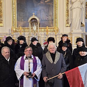Uczestnicy Marszu Żałoby i Pamięci zostali, w nawiązaniu do historycznego wydarzenia, pobłogosławieni przez księdza dziekana Krzysztofa Pawelca, a pan Tadeusz Pietras przedstawił zgromadzonym rys historyczny wydarzeń, które upamiętniają oni swą inicjatywą. W kościele Trójcy Świętej do dziś jest krzyż z tamtych czasów, który oczywiście został zaprezentowany. Na co dzień znajduje się on w drugiej bocznej kaplicy świątyni.