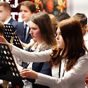 Młodzieżowa Orkiestra Dęta działająca przy Gminnym Centrum Kultury w Komarówce Podlaskiej zagrała na zorganizowanym w GCK koncercie "Popołudnie z kolędą".