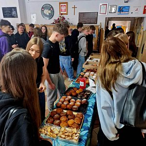 W I Liceum Ogólnokształcącym w Radzyniu Podlaskim zorganizowano dzisiaj akcję charytatywną. W związku z tym, że jest dziś Tłusty Czwartek, uczniowie sprzedawali pączki i faworki. Udało się zebrać 1400,50 zł na wsparcie leczenia Mateusza Drosia. Pieniądze zostały wpłacone na zbiórkę Mateusza na stronie Siepomaga.