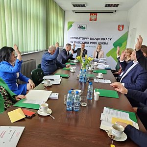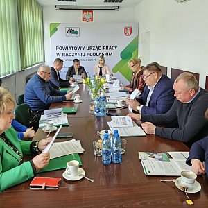 25 marca 2026 roku w siedzibie Powiatowego Urzędu Pracy w Radzyniu Podlaskim odbyło się posiedzenie Powiatowej Rady Rynku Pracy. W spotkaniu udział wzięli: wicestarosta radzyński Ireneusz Mroczek, przewodniczący Rady - Tomasz Stephan, członkowie Rady: Elżbieta Pietraszek, Mirosława Piasko, Zbigniew Marchwiak, Agnieszka Magdziarz-Orłowska, Mirosław Zalewski, Grażyna Dzida, Sławomir Kalicki oraz Ireneusz Demianiuk, a także Nina Marzec-Muniowska – dyrektor Powiatowego Urzędu Pracy w Radzyniu Podlaskim.