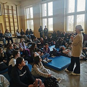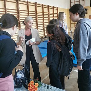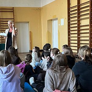 Samorząd Uczniowski Szkoły Podstawowej im. Bohaterów Lotnictwa Polskiego z okazji Dnia Kobiet zorganizował spotkanie z Katarzyną Głowacką, specjalistką z dziedziny kosmetyki, makijażu oraz stylizacji fryzur, która podzieliła się z uczennicami klas 5-8 swoją wiedzą i doświadczeniem zawodowym. Omówiła zasady higieny i dbania o nastoletnią skórę oraz cierpliwie odpowiadała na liczne pytania dotyczące pielęgnacji i doboru kosmetyków odpowiednich do wieku i potrzeb. Dziewczęta dowiedziały się, jak dbać o zdrowy wygląd i jakie kosmetyki stosować, aby nie zaszkodzić swojej skórze.