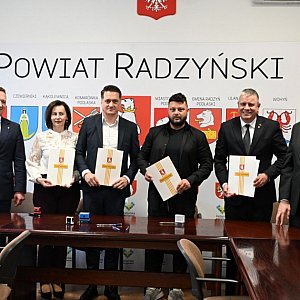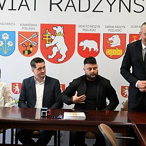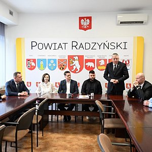 8 kwietnia 2026 roku w sali konferencyjnej Starostwa Powiatowego w Radzyniu Podlaskim sfinalizowano formalności dotyczące kolejnej inwestycji drogowej w naszym Powiecie. Podpisana została umowa na realizację zadania pn. "Przebudowa drogi powiatowej nr 1220L Wola Osowińska – Oszczepalin km 0+000 do km 2+364,50".