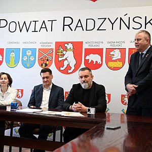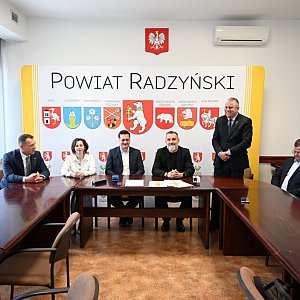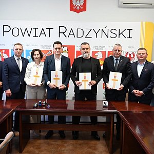 W uroczystym podpisaniu dokumentów wzięli również udział: Szczepan Niebrzegowski - starosta radzyński, Ireneusz Mroczek - wicestarosta, Grzegorz Gałecki - przewodniczący Rady Powiatu, Daniel Grochowski - wójt gminy Radzyń Podlaski, przedstawiciele Zarządu Dróg Powiatowych w Radzyniu Podlaskim.