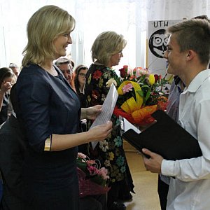 Swoją obecnością zaszczycił Tomasz Stephan, zastępca burmistrza, który docenił trud pedagogiczny i szczególne zaangażowanie dyrektor Bożeny Marcinkowskiej wkładane w sprawne i przyjazne funkcjonowanie szkoły. Dyrektor Gimnazjum nr 2 w Radzyniu Podlaskim otrzymała nagrodę burmistrza miasta.
