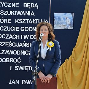 Na starcie marszobiegu stawiło się ok. 40 osób. Ks. Grzegorz Matysiak rozpoczął spotkanie modlitwą, następnie głos zabrała dyrektor ZSP, Grażyna Dzida, wskazując, iż patron placówki - św. Jan Paweł II propagował sport swoim życiem.