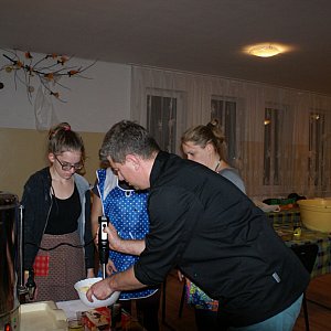 Po wprowadzeniu nas w tajniki przygotowywania potraw przez instruktora pracowaliśmy w grupach. Praca dosłownie paliła nam się w rękach, wszyscy byliśmy bardzo zaangażowani. Podczas wykonywania wszystkich czynności związanych z przyrządzaniem dań był czas na wymianę doświadczeń. Osoba prowadząca warsztaty jak i starsi uczestnicy chętnie udzielały porad i wskazówek młodszym uczestnikom. Wspominano zwyczaje i codzienne życie na dawnej wsi, zarówno naszej jak i sąsiadujących miejscowości.