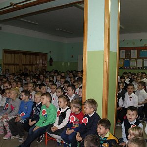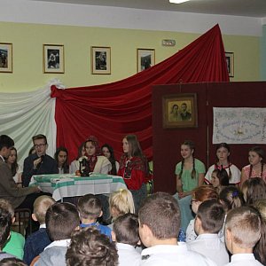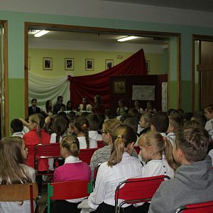 Z kolei pani Leszcz, dziękując artystom za udany występ, przypomniała, tym razem gimnazjalistom, że obowiązek walki za ojczyznę jest ważny, ale sprawą równie ważną jest obowiązek dostrzegania drugiego człowieka, miłość i wzajemny szacunek.