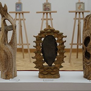 Oficjalne otwarcie wystawy obrazów Marka Leszczyńskiego zostało połączone z oficjalnym otwarciem wystawy rzeźb Mariana Korczyka. Urodził się w 1953 r. w Branicy Radzyńskiej. W 1973 r. ukończył Liceum Sztuk Plastycznych w Nałęczowie. Zajmuje się rzeźbą sakralną, a także projektowaniem i realizacją wnętrz kościołów. Obok rzeźb o tematyce sakralnej tworzy też rzeźby ukazujące postacie ludzkie, zwłaszcza kobiece, a także rzeźby o kształtach abstrakcyjnych, takie jak rzeźby z serii "Kamienna konstelacja". Rzeźbi w drewnie, głównie lipowym. Jest znany z ołtarza papieskiego w Drohiczynie przygotowanego na pielgrzymkę Jana Pawła II do Polski w 1999 roku. Marian Korczyk wykonał też krucyfiks wiszący nad ołtarzem, ramę obrazu Matki Boskiej Częstochowskiej i tron biskupi w katedrze w Siedlcach, elementy wystroju wnętrza katedry w Drohiczynie, ołtarze, chrzcielnice i prospekt organowy w konkatedrze w Sokołowie Podlaskim. Ponadto zaprojektował ołtarze i konfesjonał oraz wykonał elementy snycerskie w odbudowanym po pożarze kościele w Bezwoli. Jego rzeźby można zobaczyć w kościołach w Białej Podlaskiej, Kodniu, Lubartowie i innych miejscowościach. Jedna z jego rzeźb trafiła nawet do XI-wiecznego kościoła w Inowrocławiu.